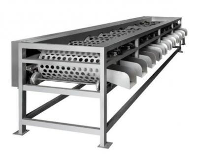 本設備是全不銹鋼果蔬分選機械,是由上果輸送機和滾杠式分選機組成;上果輸送機通過滾杠自動旋轉來達到均勻上料,滾杠式分級機根據果蔬直徑大小來分選;