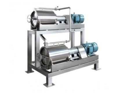 1、開機:開機前首先檢查轉動部件各零件的聯接是否牢固可靠、電動機轉向與標牌是否一致,再向兩端軸承加進20號機械油,檢查軸內所有螺釘是否松動,筒前蓋螺栓是否緊固,檢查無松動后,方可開機。然后均勻加進物料,切勿沖擊。視出渣出漿具體情況,適當調整刮板的螺旋角及刮板與篩網的間隙使渣子的含汁率達到工藝要求。